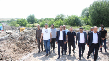 İncelemelerine Aksaray Mahallesi ile başlayan Başkan Şerifoğulları, Güney Çevre Yolu ile şehir merkezi bağlantısını sağlayan bulvar üzerindeki “Aksaray Köprüsü ”nün, devam eden çalışmalarını inceledi.