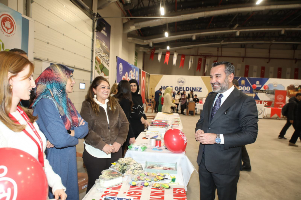 BAŞKAN ŞERİFOĞULLARI STANTLARI ZİYARET ETTİ, AİLELERLE BİR ARAYA GELDİ