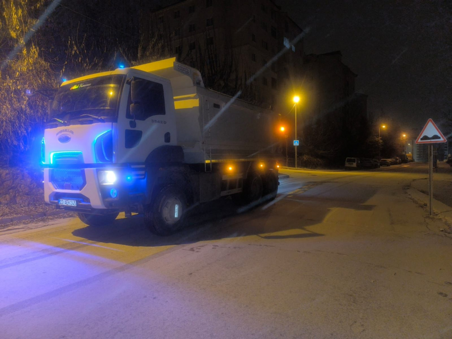 Gece saatlerinde kar yağışının başlamasıyla birlikte sahaya çıkan ekipler, ulaşımın aksamaması ve vatandaşların mağduriyet yaşamaması için ana arterler başta olmak üzere şehir merkezi genelinde bulvar ve caddelerin trafiğe açık tutulması için kar küreme, tuzlama ve solüsyon uygulaması gerçekleştiriyor.